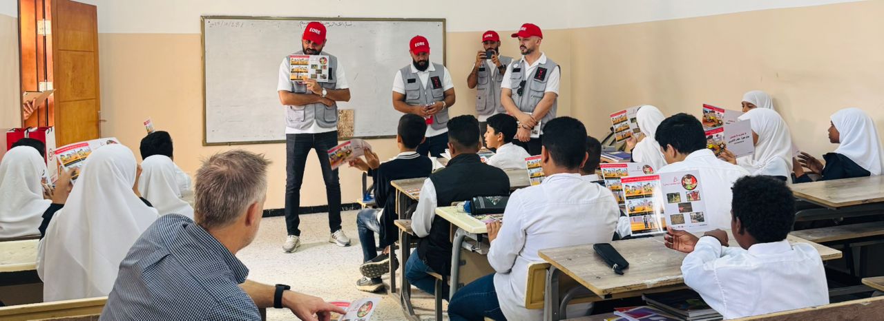 وفي سياق الزيارة، قامت المنظمة بتنفيذ جولة ميدانية شملت نشاطين رئيسيين: الأول تمثل في متابعة عمليات تطهير أراضي القتال بمنطقة الأحياء البرية – طريق المطار، بمرافقة فريق ضبط وضمان الجودة التابع للمركز، والثاني في منطقة السواني، حيث تابع الوفد تنفيذ حصة توعية في إحدى مدارس التعليم الأساسي، نفذها فريق التوعية التابع للمنظمة، وذلك بحضور فرق قسم ضبط وضمان الجودة وقسم الإعلام والتوعية بالمركز.