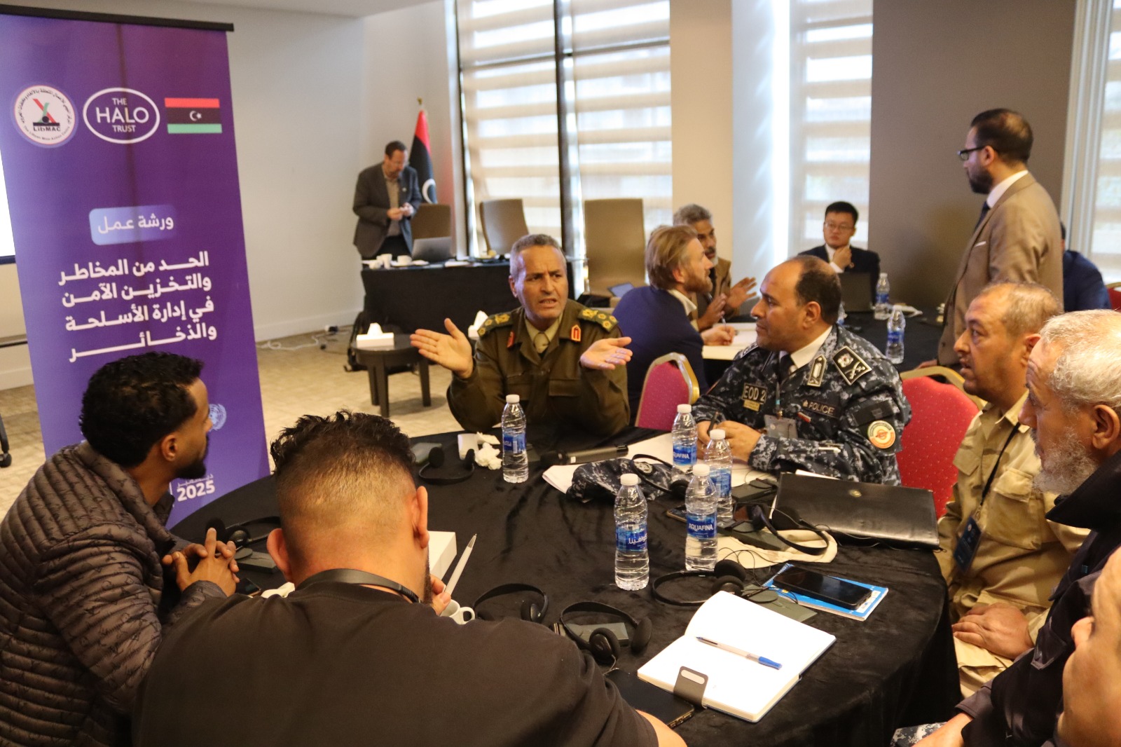 نُظِّمت على مدى يومين ورشة عمل متخصصة حول الحد من المخاطر المرتبطة بإدارة الأسلحة والذخائر والتخزين الآمن، بتنسيق مشترك بين المركز الليبي للأعمال المتعلقة بالألغام ومخلّفات الحروب (LibMAC) ومنظمة هالو، وبمشاركة واسعة من الجهات الوطنية ذات العلاقة.
